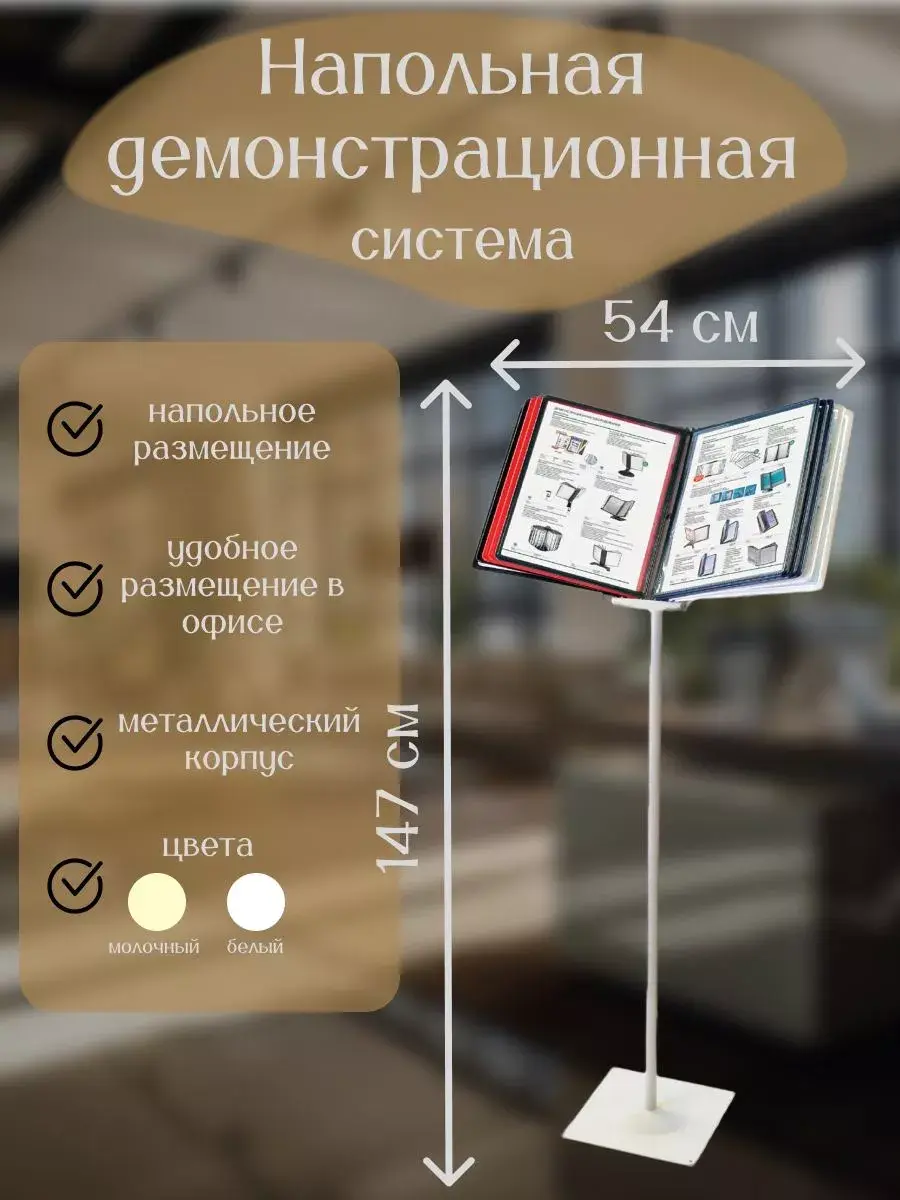 Напольная демонстрационная система BRAUBERG SOLID позволяет удобно и быстро разместить информацию о компании, о предлагаемых товара, услугах и ценах, инструкции для персонала и другое. 10 двухсторонних цветных панелей позволяют разместить одновременно до 20 листов формата А4. Панели с листовками возможно разместить как вертикально, так и горизонтально. Прочные и гибкие литые рамки панелей изготовлены из полипропилена, пригодного для повторной переработки и дальнейшего использования. Демопанели оснащены съемными ярлычками-табуляторами для маркировки и удобного поиска нужной информации. Карман демопанели из прочного прозрачного материала с антибликовым покрытием надежно защитит документы от внешних воздействий и делает процесс чтения более комфортным. Утяжеленное металлическое основание с антискользящей поверхностью обеспечит устойчивость конструкции. Стильный молочный цвет металлического корпуса подойдёт для большинства современных интерьеров. Удерживайте внимание клиентов и предоставляйте информацию эффективно и наглядно с демонстрационной системой от BRAUBERG. Больше никаких теряющихся листов - выбирайте качество BRAUBERG! Заказывайте товар уже сейчас!